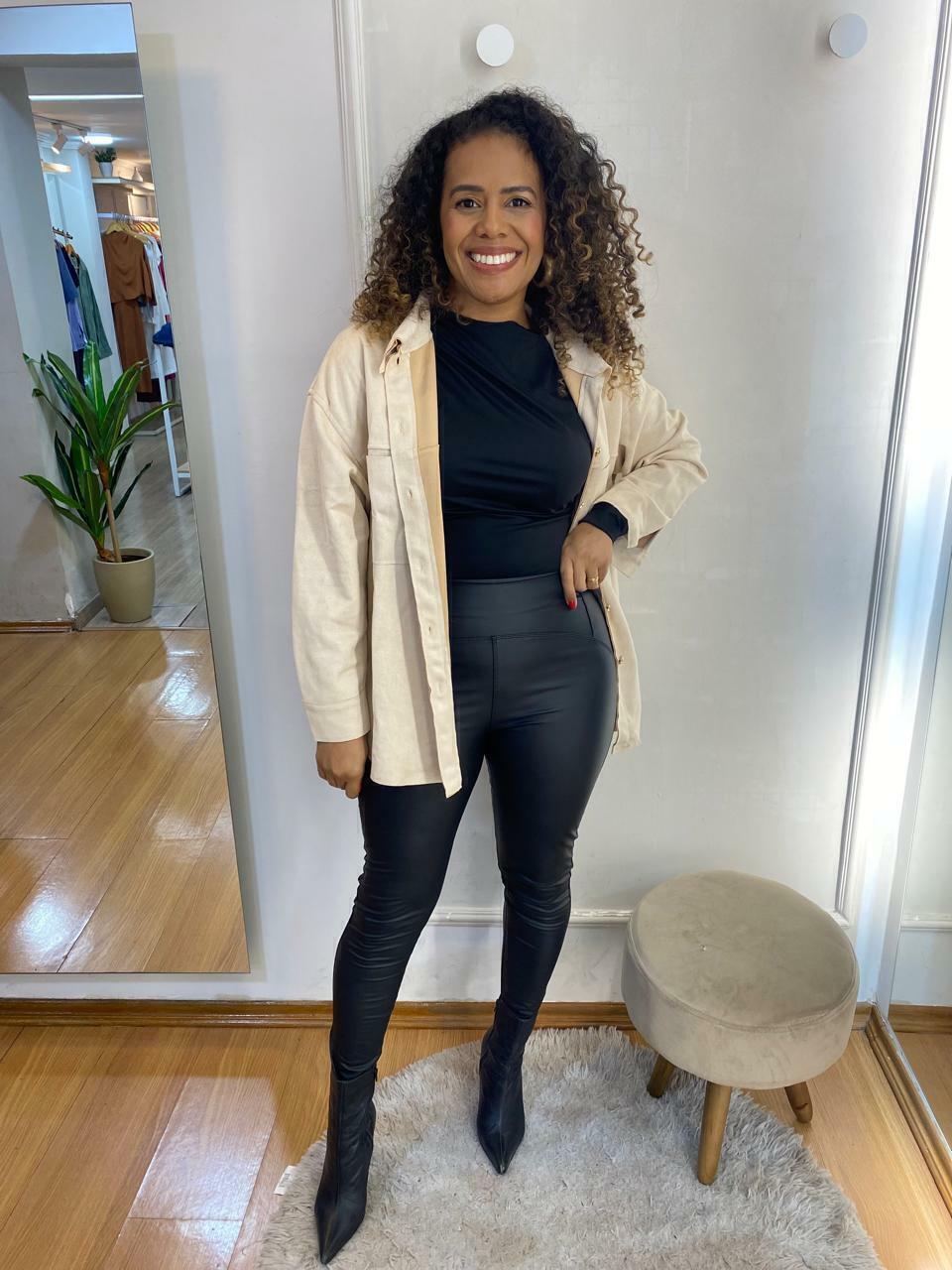 A Calça corino é uma peça super estilosa, coringa e além disso muito quentinha pois o interno é todo peluciado. Desenvolvida com modelagem ajustada ao corpo, perfeita para os dias de inverno. A calça tem cós alto e largo, o tecido possui bastante elasticidade proporcionando conforto ao vestir.