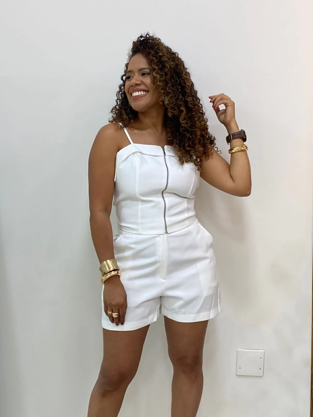 Conjunto de blusa e shorts confeccionados em viscose, o shorts forrado com fechamento por zíper frontal e bolsos funcionais, a blusa possui fechameno de zíper frontal, e alças regulaveis. Ele é muito versátil! Uma peça super curinga para ter no guarda roupa! Leve e confortável que garante conforto e estilo.