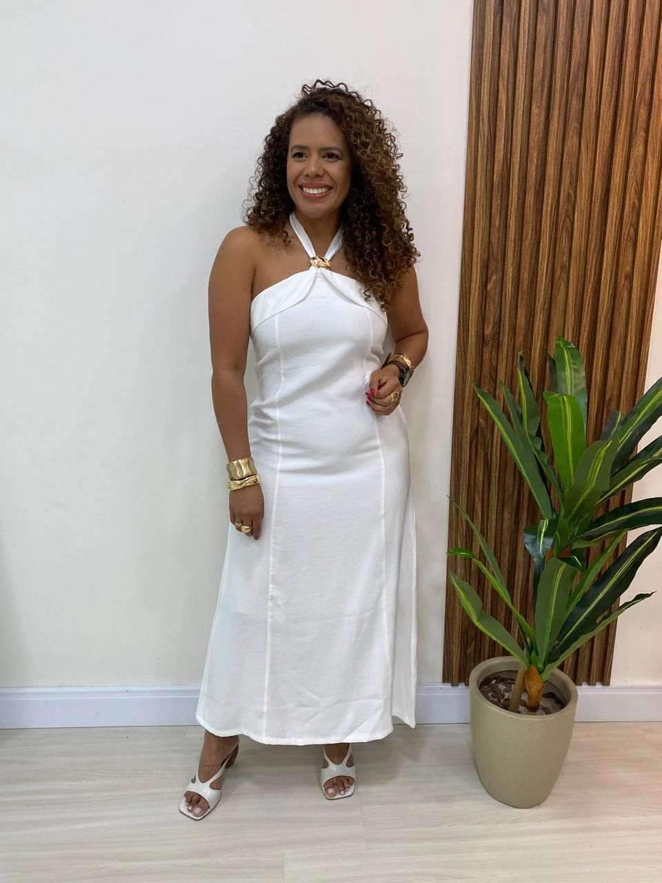 Vestido longo frente unica, com acessório removivel, em viscose forrado com fechamento por zíper nas costas. Pode ser usado em varias ocasiões, salto ou uma rasteira, ele fica incrível!